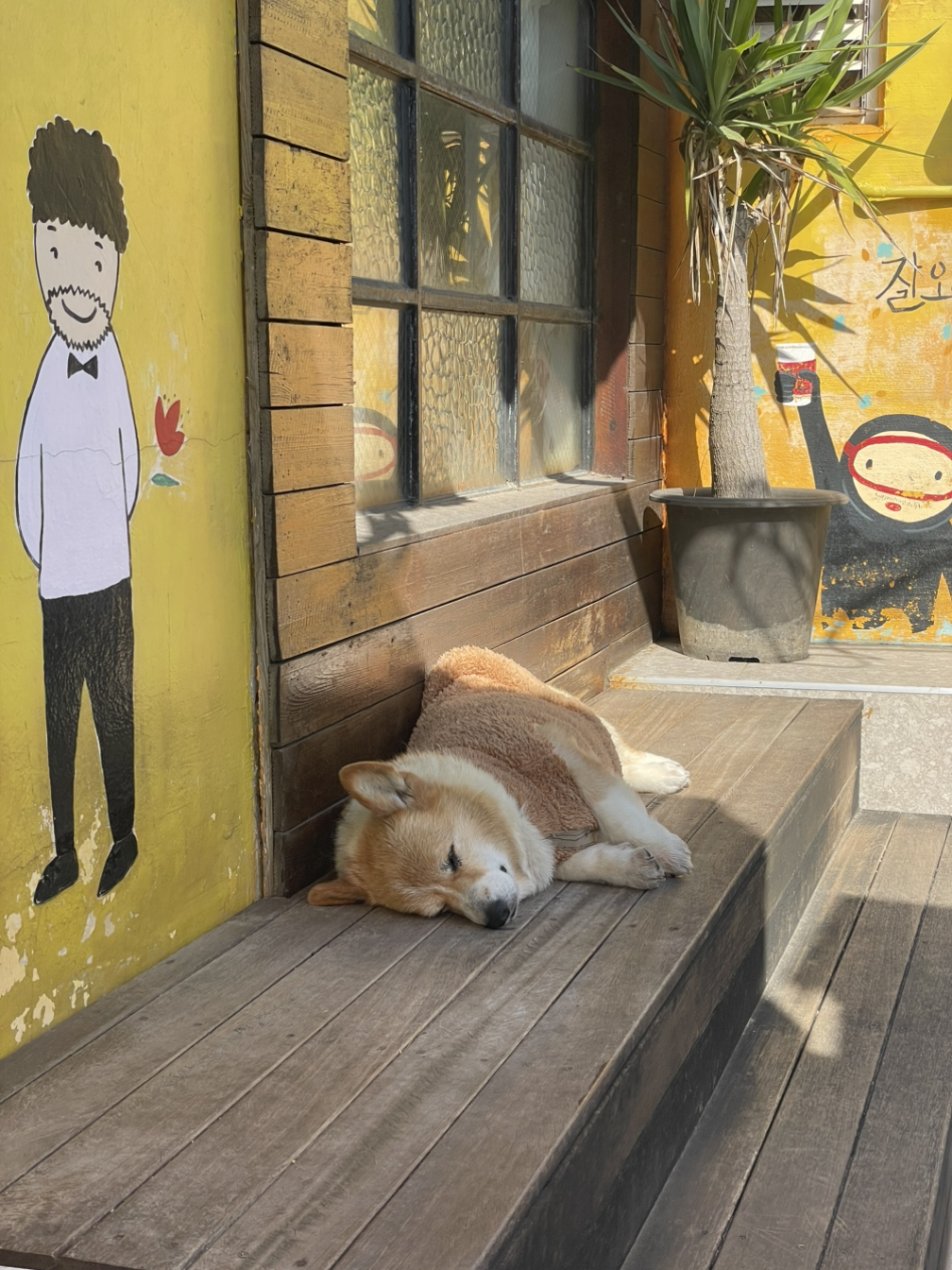 아기자기하고 개성 있게 꾸며진 카페 건물, 귀여운 웰시코기들까지. 이곳은 제주가 아닌 뭍에 있어도 참 사랑스러운 공간이었을 것이다. 하지만 이곳이 제주에 있기에 더 빛을 발하는 순간이 있는데 난 그 순간을 제대로 목도하고 말았다.