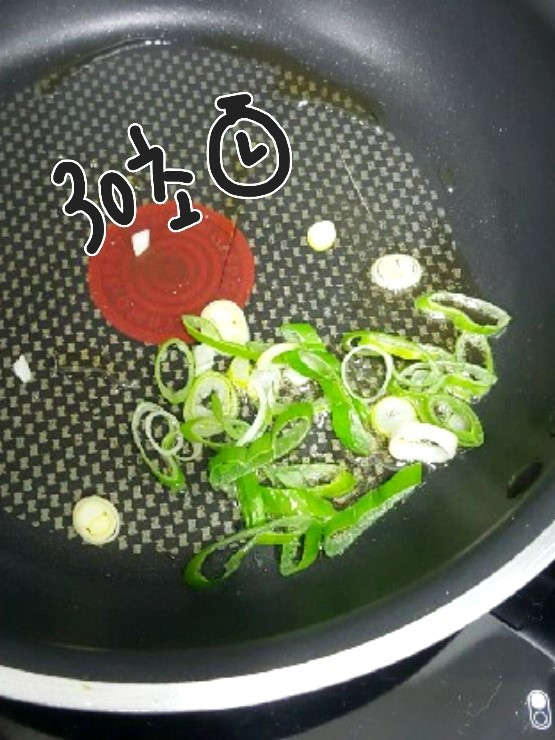 기름에 대파 볶다가 고기 양파 + 다진마늘 반숟갈