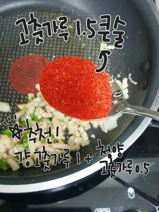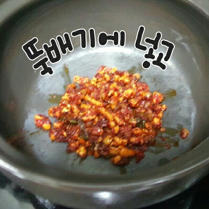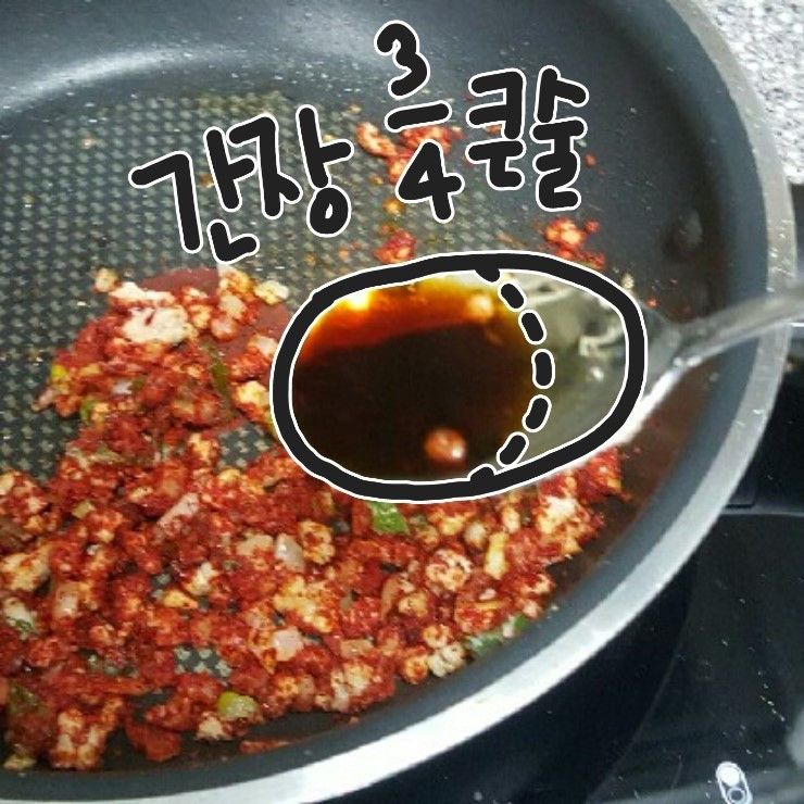 다진마늘 0.5큰술, 고춧가루 1.5큰술, 간장 0.8큰술,