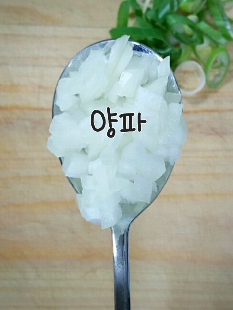 대파 1큰술, 양파1큰술, 돼지고기2큰술 준비