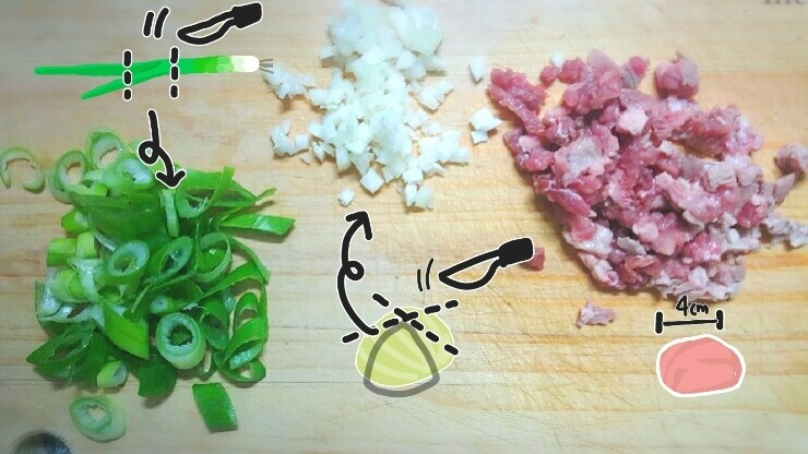 대파, 양파 각 1큰술, 돼지고기 다진거 2큰술,