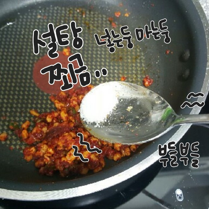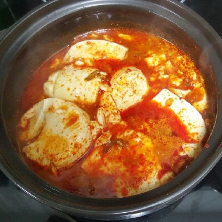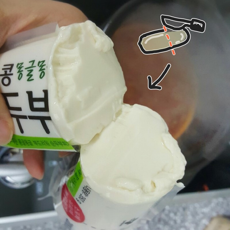 순두부에서도 물이 나오니께 적게넣어야 됩니다