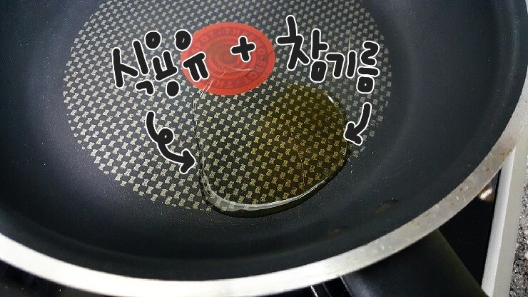 식용유랑 참기름을 한스푼정도씩 부어주시고