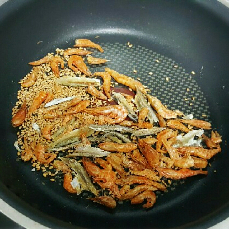 2. 새우+멸치+깨를 후라이팬에 살살 볶은 뒤