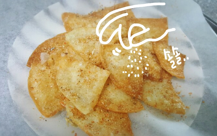 튀긴 칩 위에 양념가루를 솔솔 뿌려주세요!