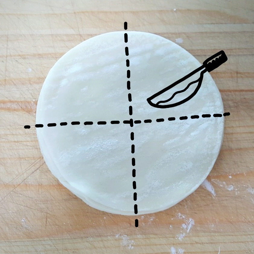 1.만두피는 자연해동 후에 칼로 4등분 해주세요