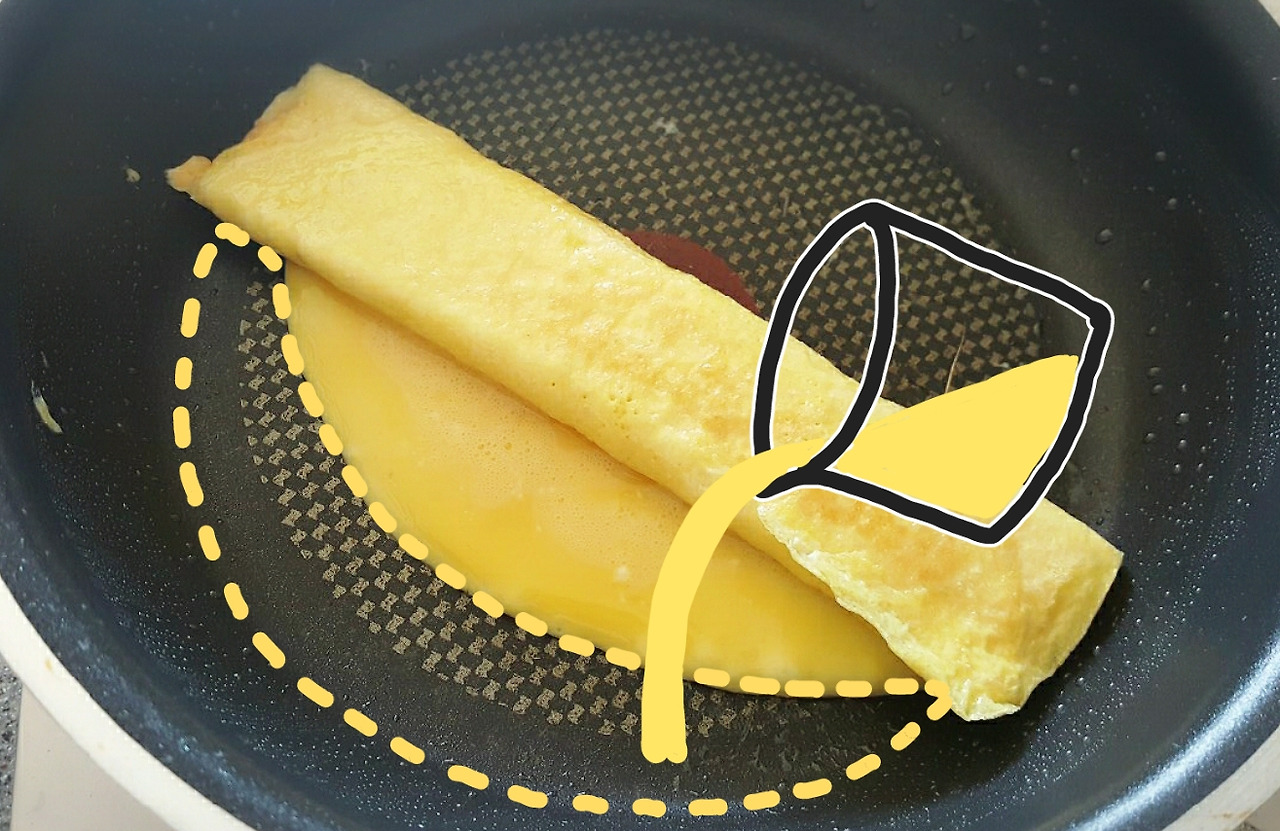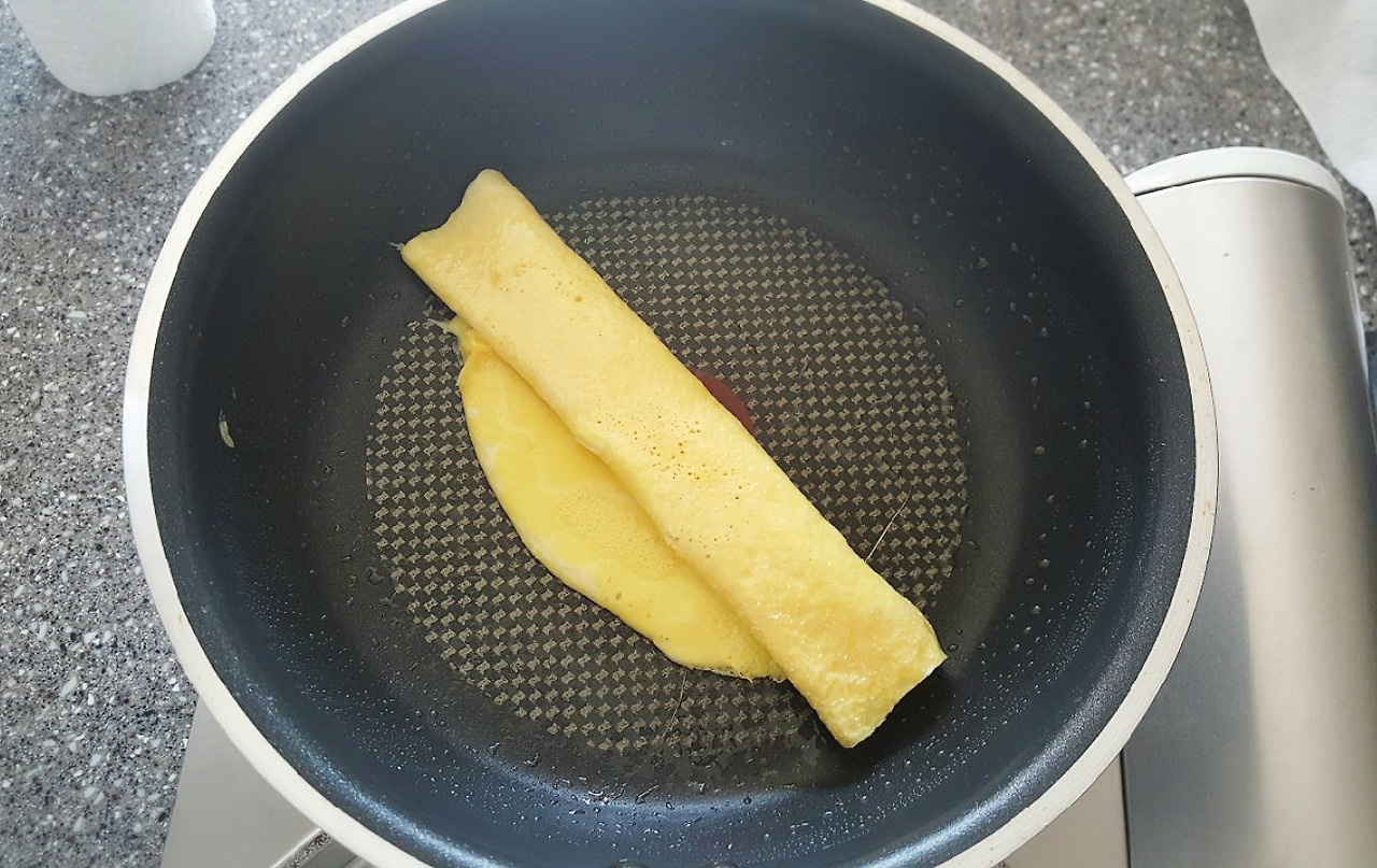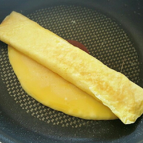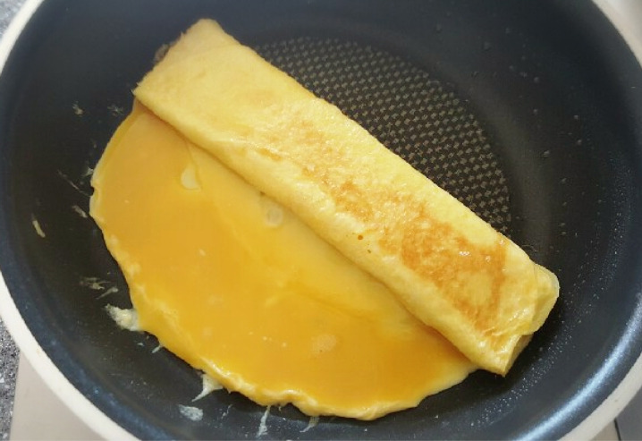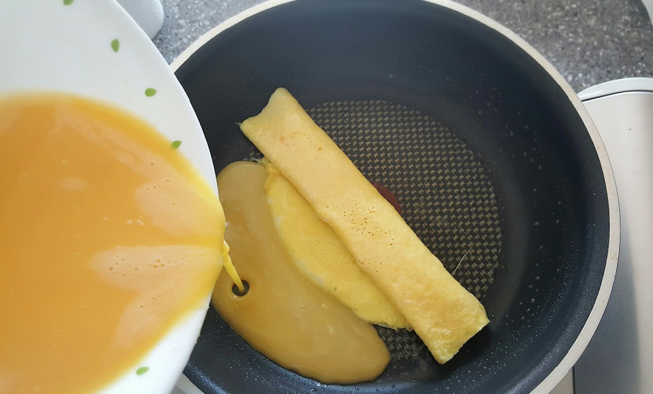 접은 계란을 오른쪽으로 당겨두고