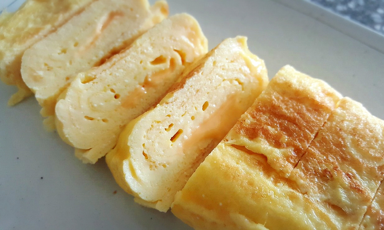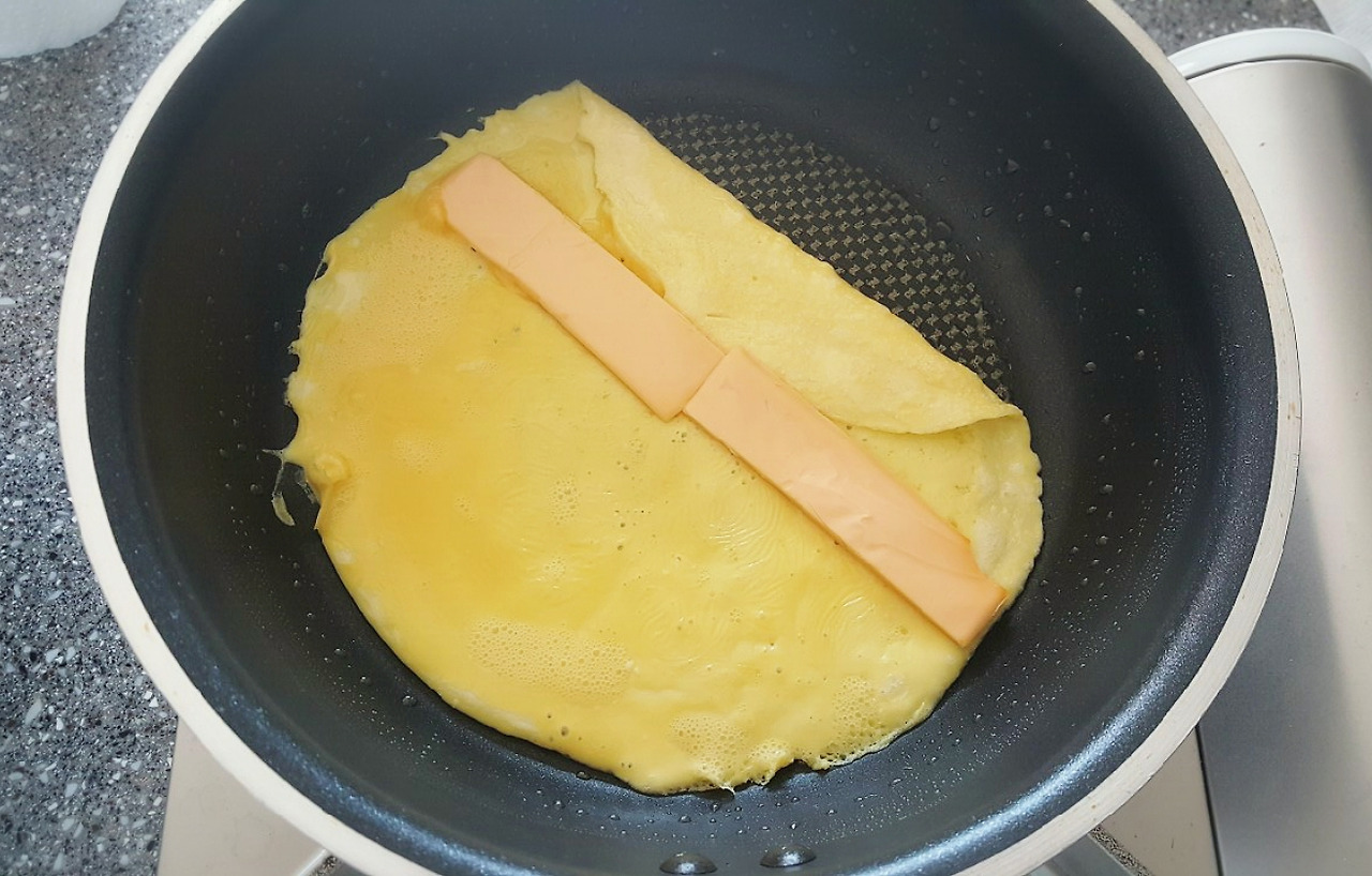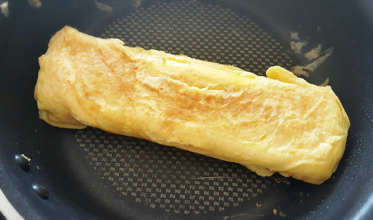 접은 계란을 오른쪽으로 당겨두고