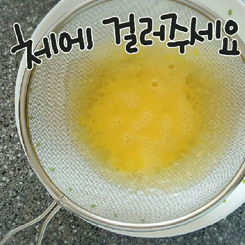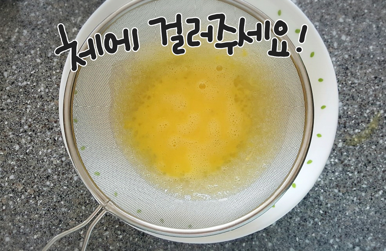 2. 섞은 계란을 체에 쳐주세요