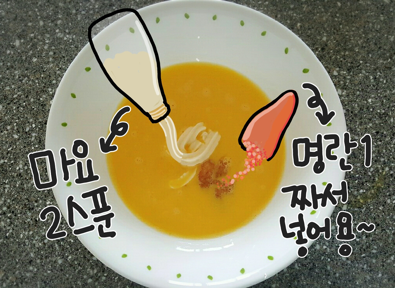 3. 마요네즈와 명란1개를 넣어주세요