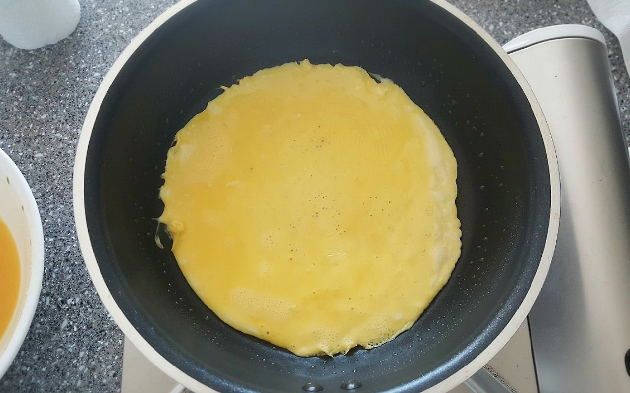 불은 중약불! 그리고 계란물을 3분의 1정도 부어주세요