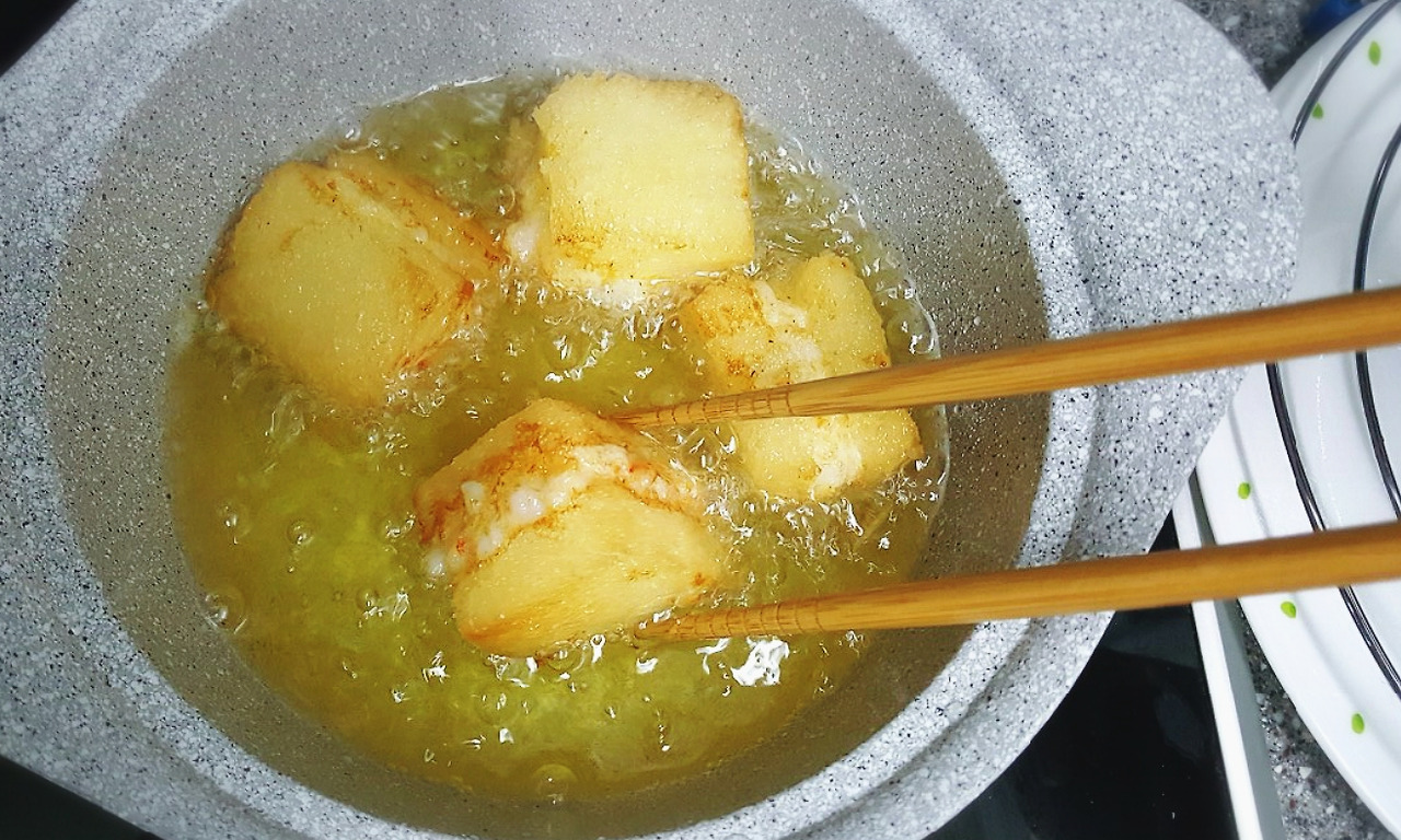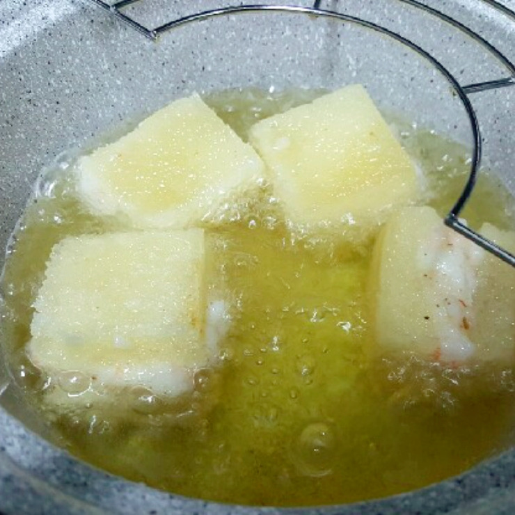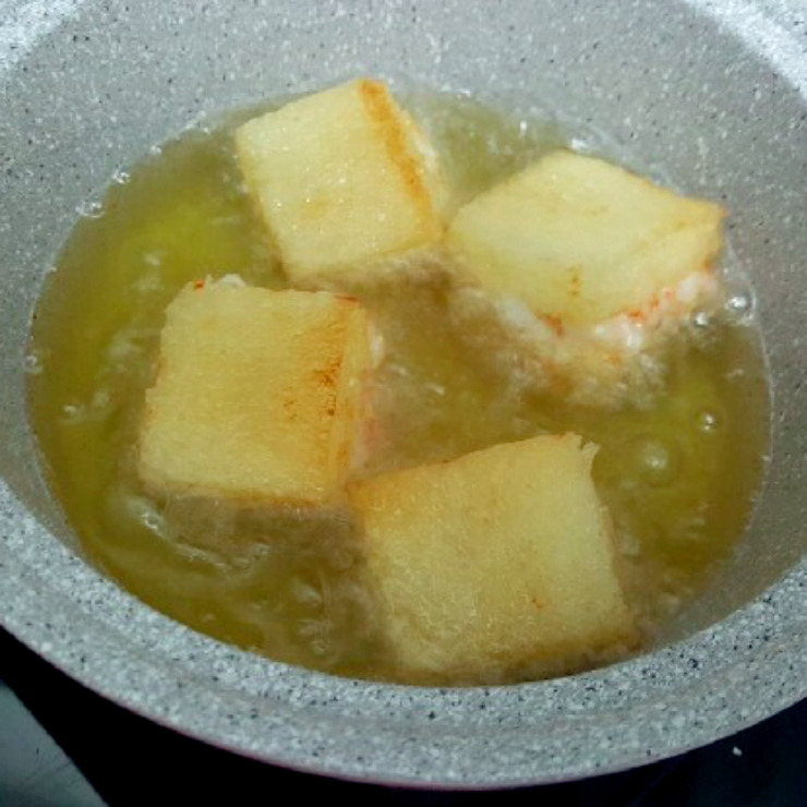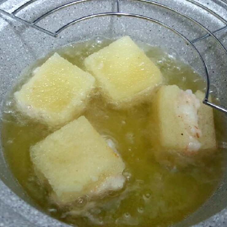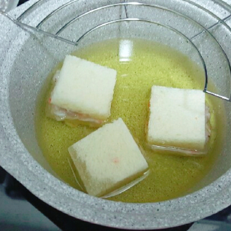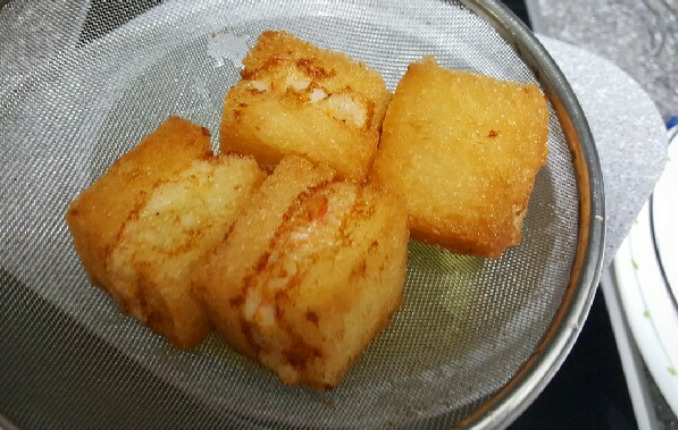 멘보샤는 60도 정도의 낮은온도에서부터 튀겨내야