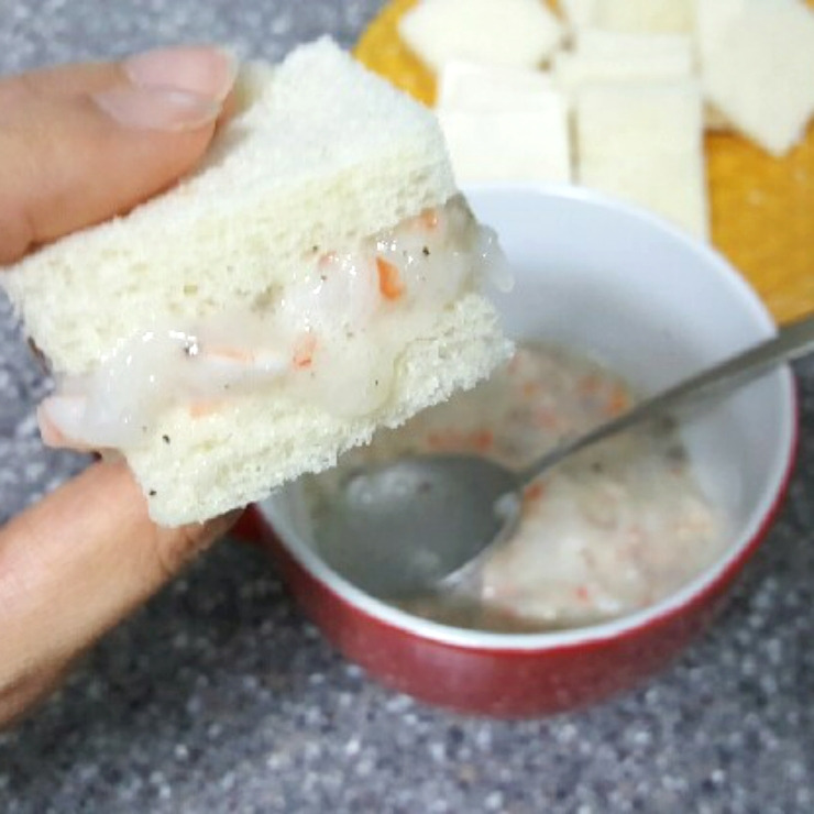 식빵4장, 새우6~8개, 전분, 올리브유, 계란1개