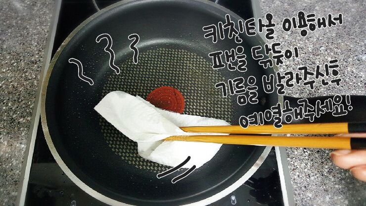 키친타올에 묻혀 골고루 팬에 발라주시고
