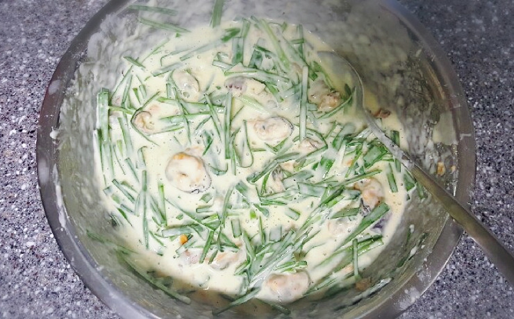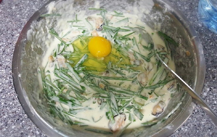 반죽물을 만든 뒤에 재료를 넣는데요