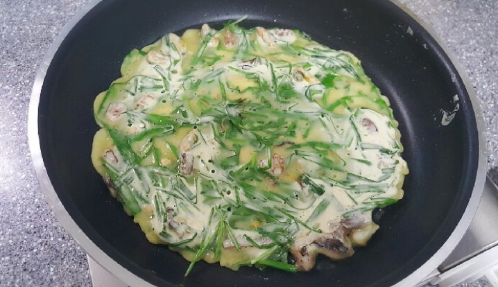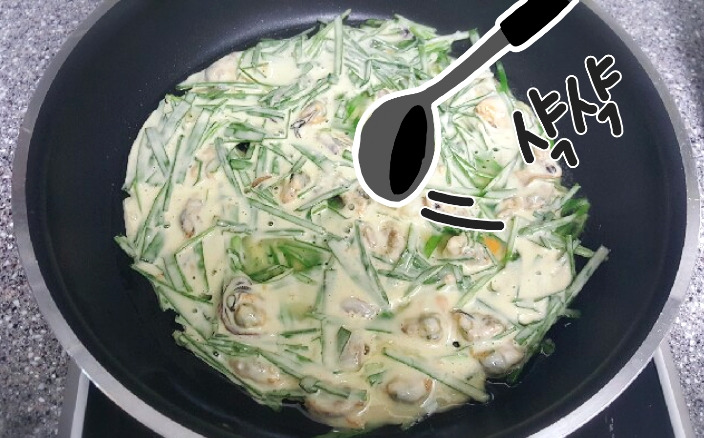 치이익- 소리와 함께 전이 익어가면 반죽이 충분히 익을때까지 기다려주세요