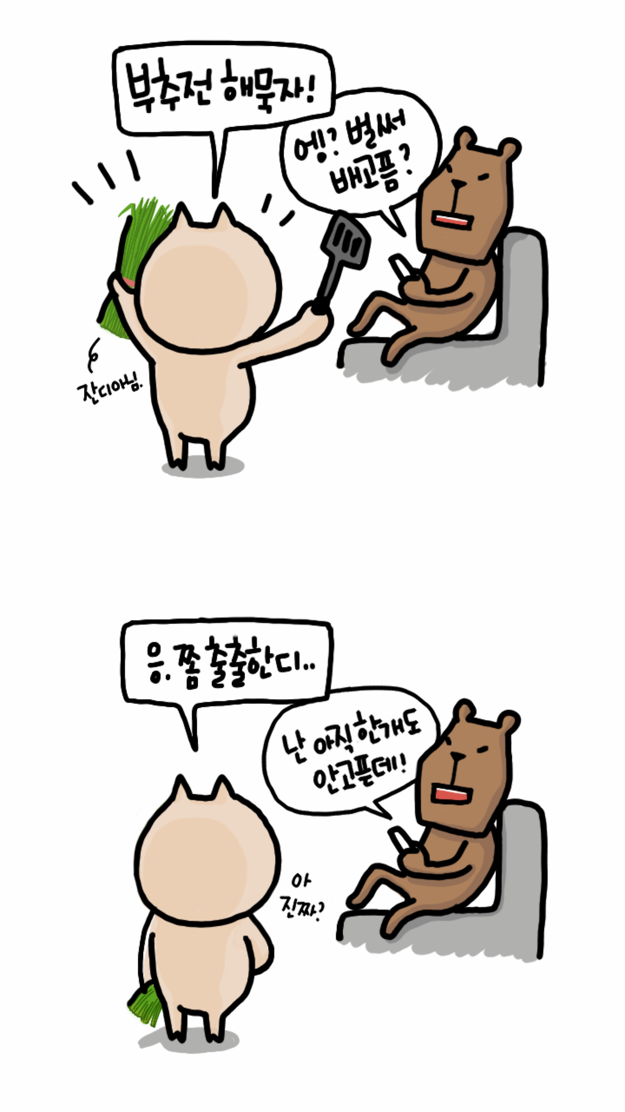 빗소리랑 빈대떡 부치는 소리가 비슷해서