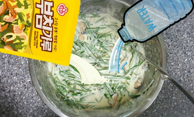 3. 부침가루와 물을 번갈아 부어가면서 점도를 맞춰주세요.