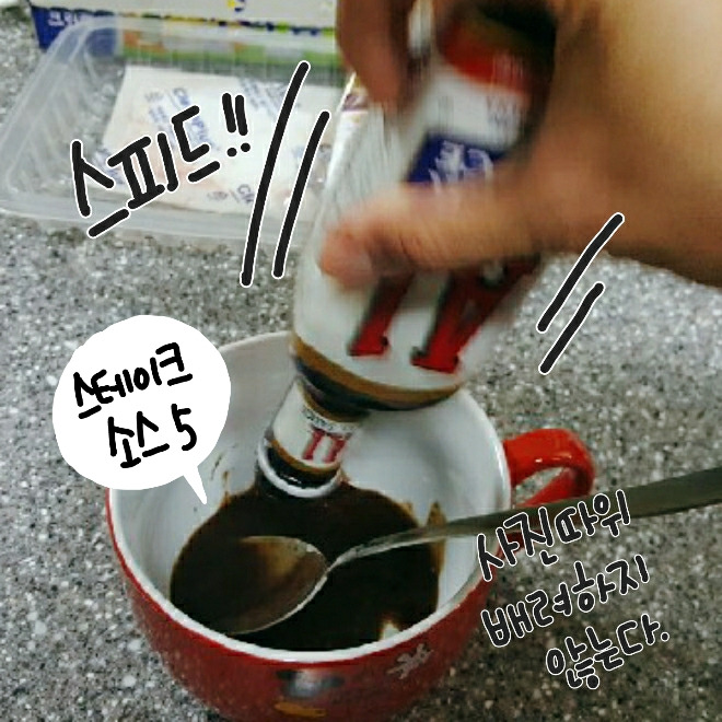 소스: 스테이크 소스 5, 굴소스2, 다진마늘2,