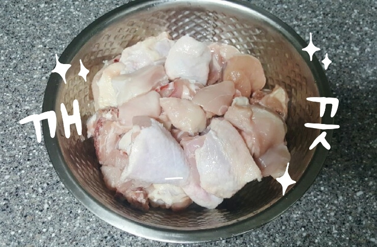 닭은 물로 깨끗이 씻어 준비해놔주세요
