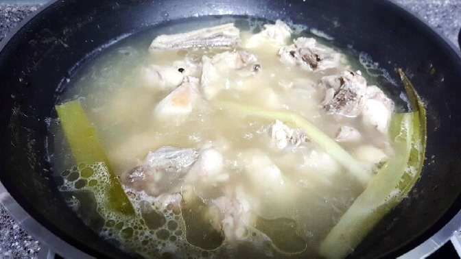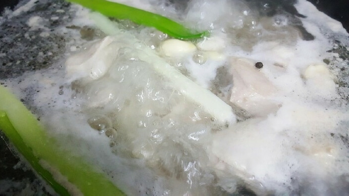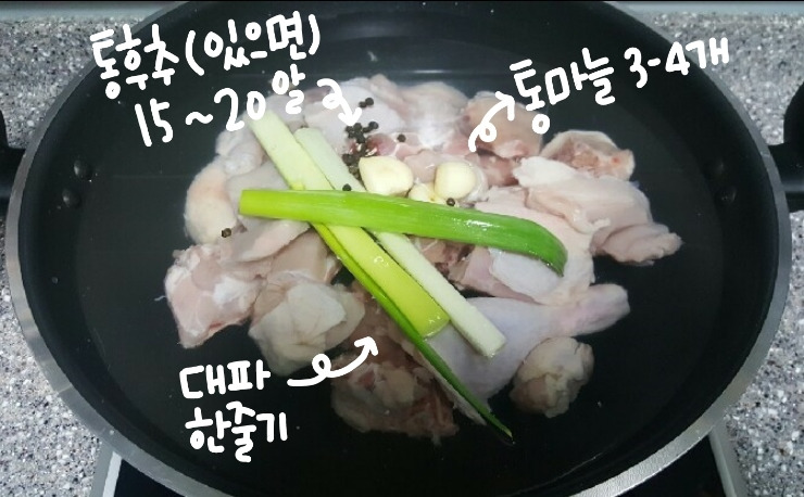 닭한마리, 대파1줄기, 마늘4알, 후추