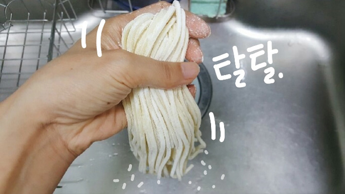 칼국수면은 겉의 밀가루를 탈탈 털어놔주세요