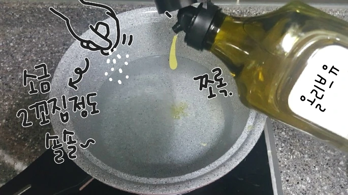 소금 2꼬집.에 올리브유 1찍. 해주시고