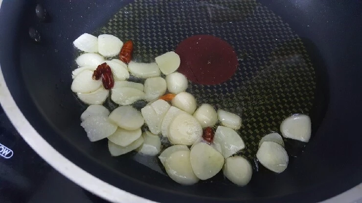 썰어놓은 마늘과 페퍼론치노를 볶아주세요