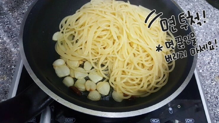 스파게티 면 1인분, 마늘8~10개, 올리브유,