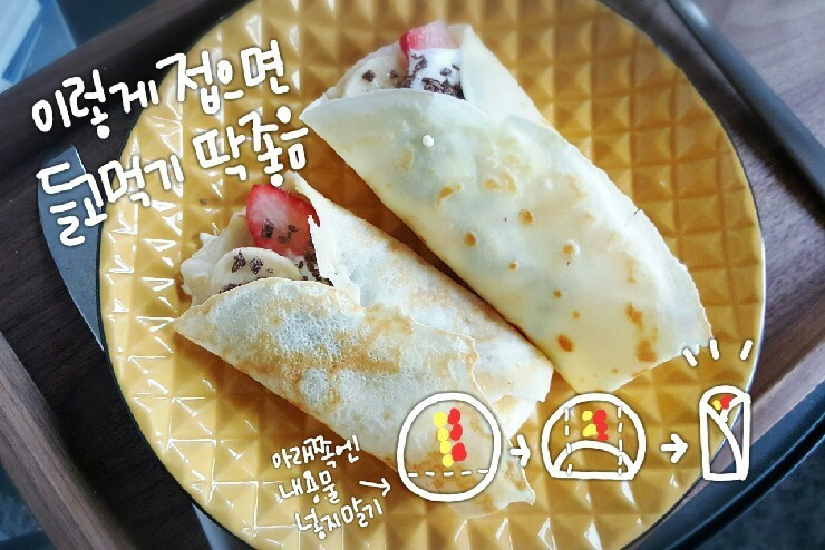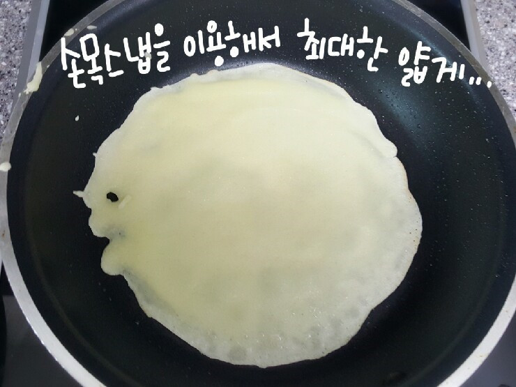 팬에 반국자 붓고 손목스냅으로 얇게 피면 좋아요