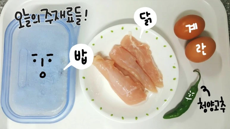 밥 한공기, 닭고기100~150g, 계란 2개