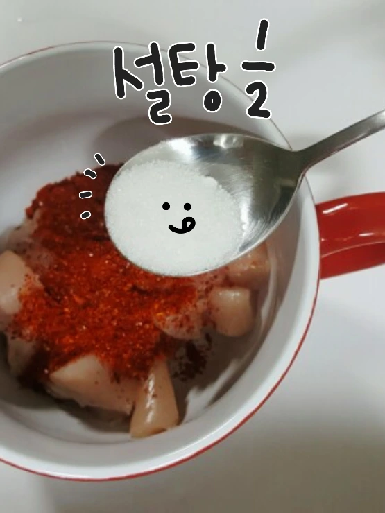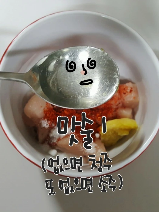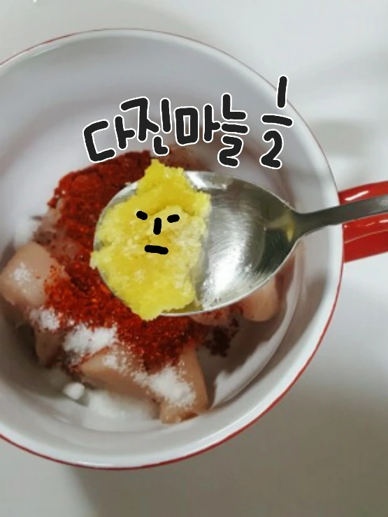 고춧가루2, 설탕0.5, 다진마늘0.5, 맛술1,