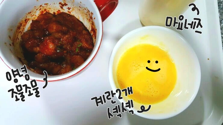 양념된 고기랑 계란, 마요네즈!