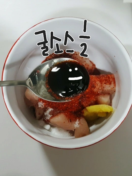 매실액0.5, 굴소스0.5, 간장1.5, 청양고추1