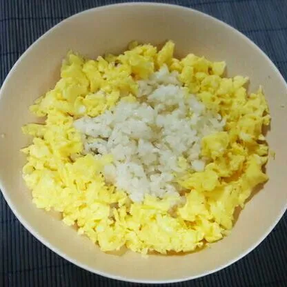 그릇에 밥 담고 계란 두르고