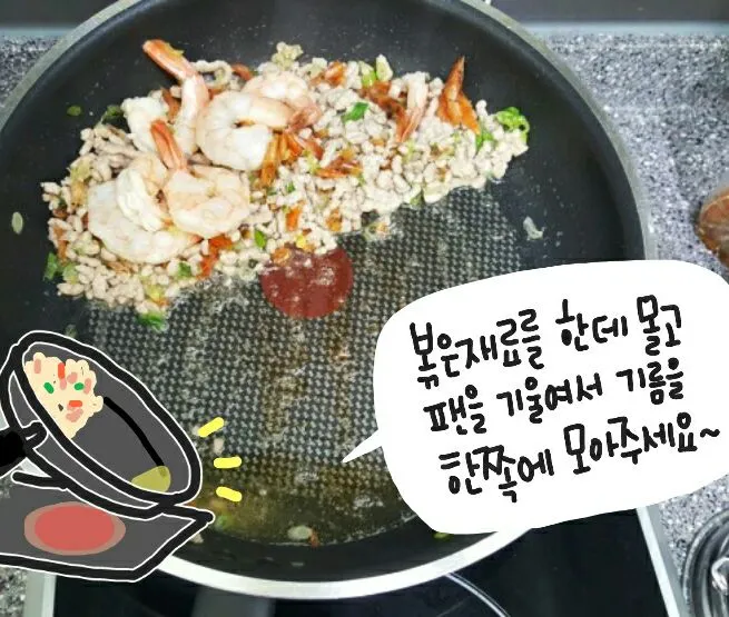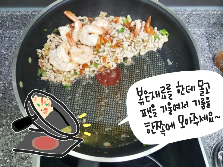 식용유를 넉넉히 둘러야 나중에 면이 안뻑뻑해용