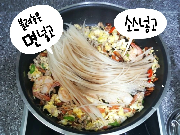 면넣고 소스(굴소스:액젓:설탕:물=1:1:1:3)넣고 볶다가