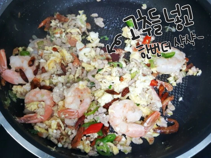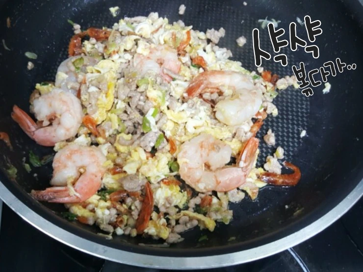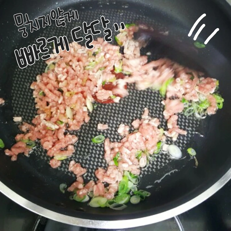 뭉치지 않도록 도구를 사용해 샥샥 볶아주시고요