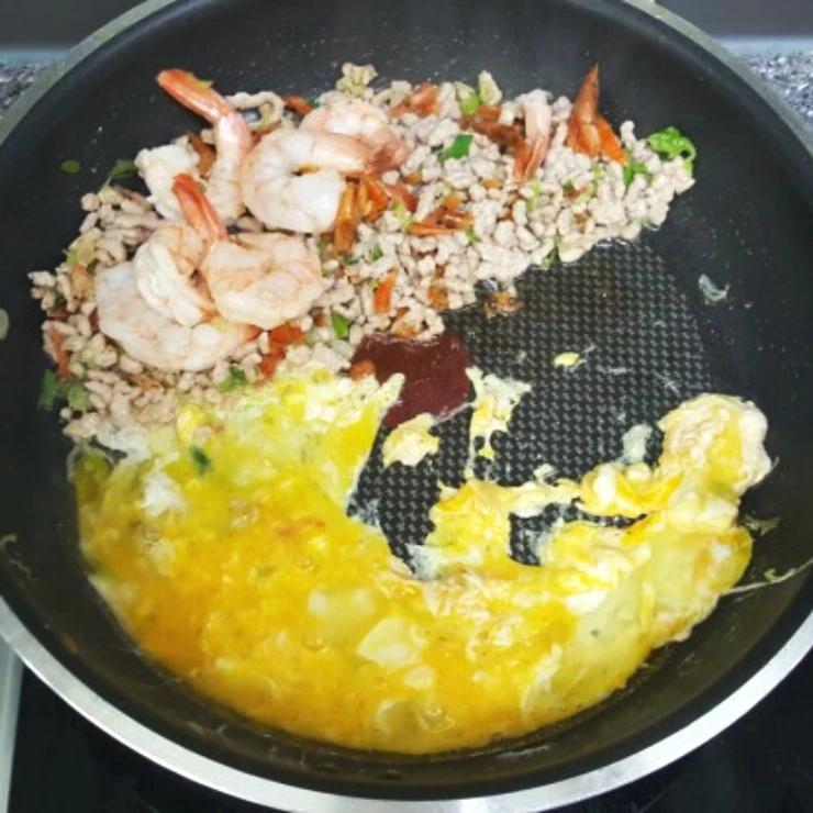 거기에 계란을 바로 깨 넣고 스크램블블블 해주세요