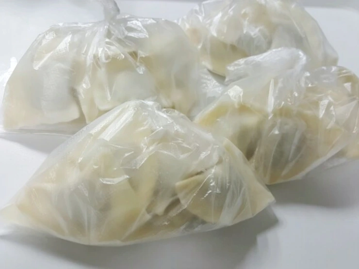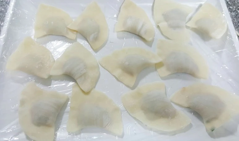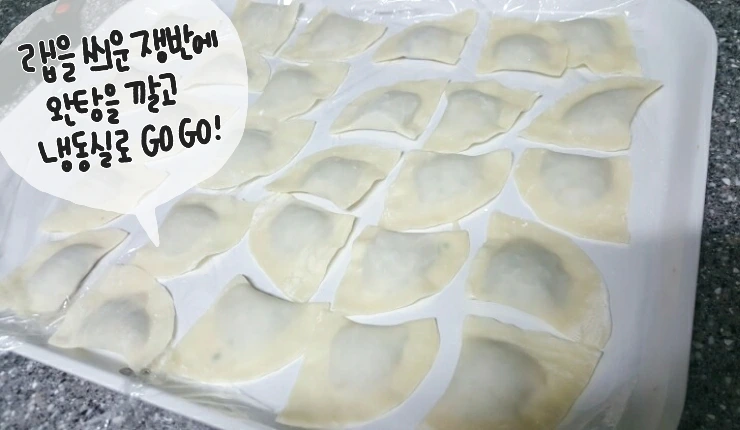 쟁반에 랩을 깔고 빚은 완탕을 널어?두고