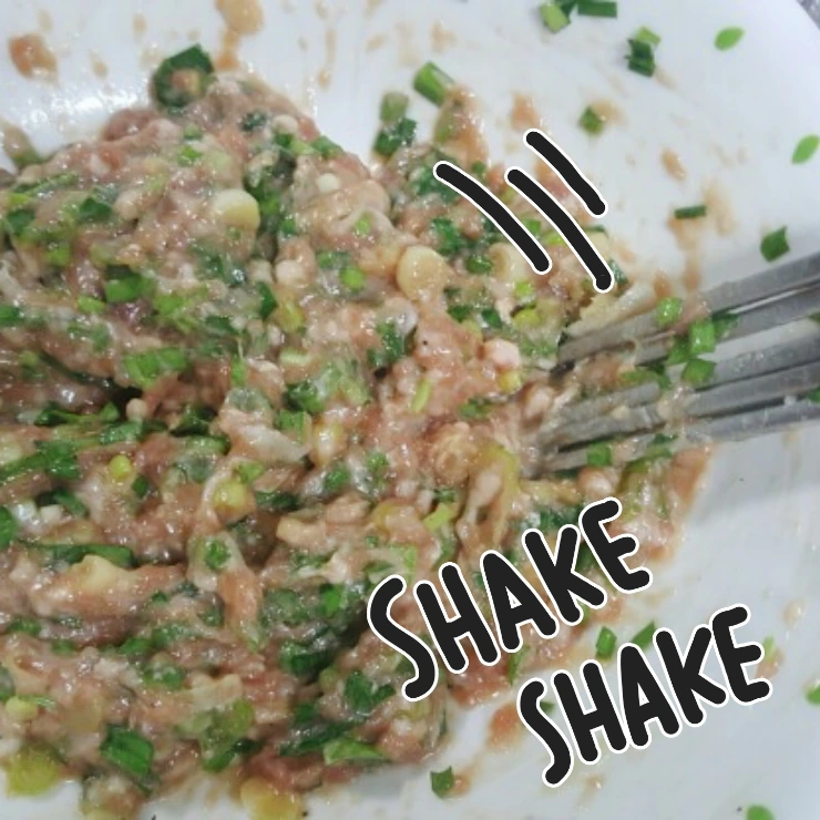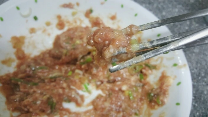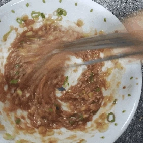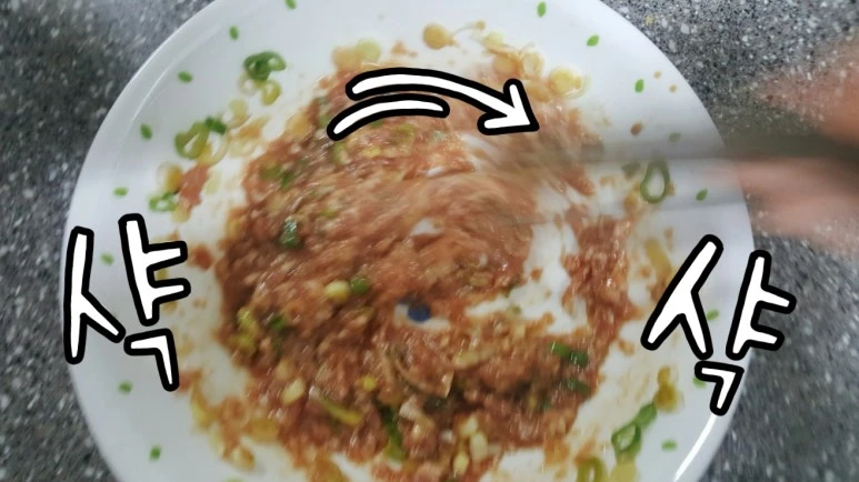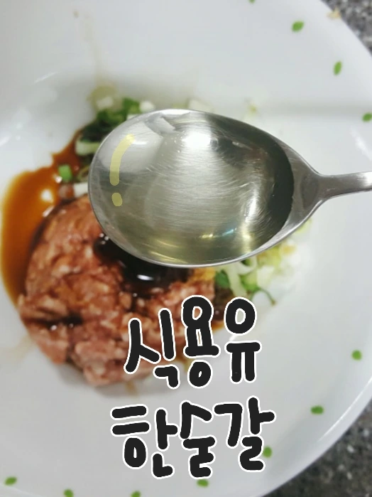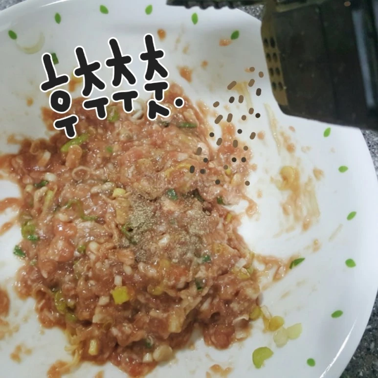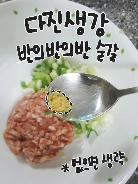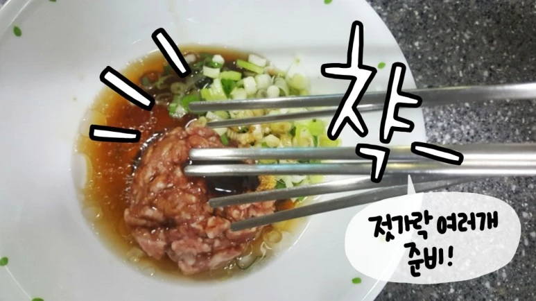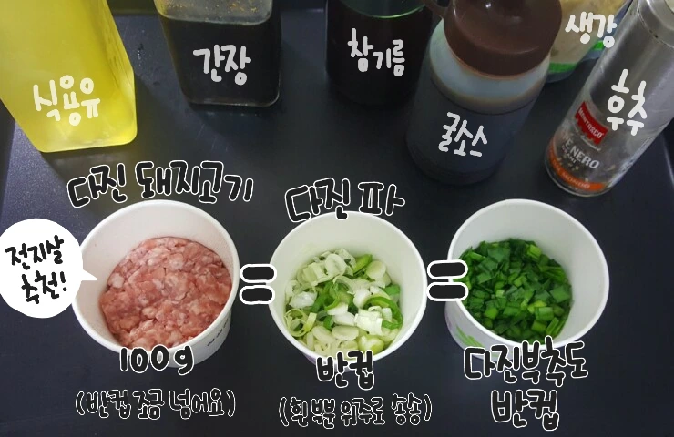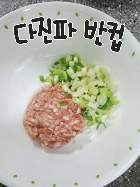 1-1) 다짐육 100g에, 다진파 / 다진부추 반컵씩,