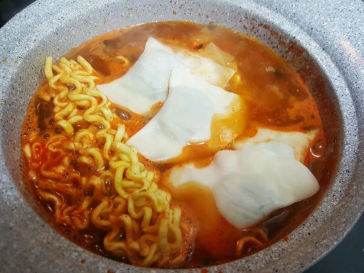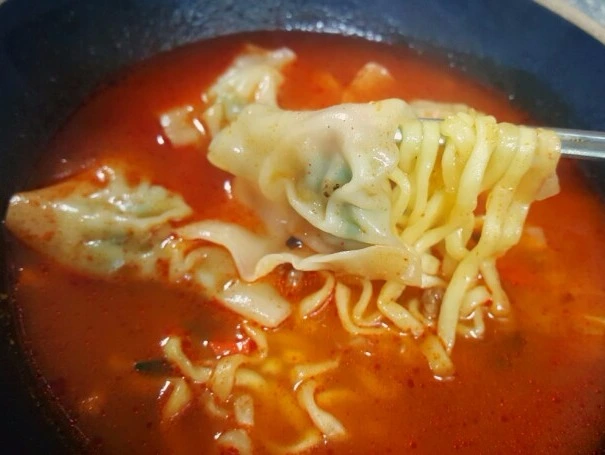 완탕 라면. 면 넣을때 같이 넣고 끓이기