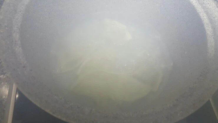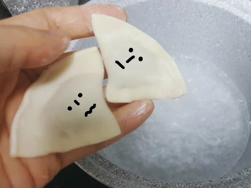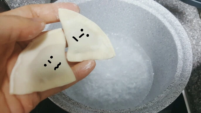 삶은 완탕. 끓는 물에 1분 삶고 건져내기