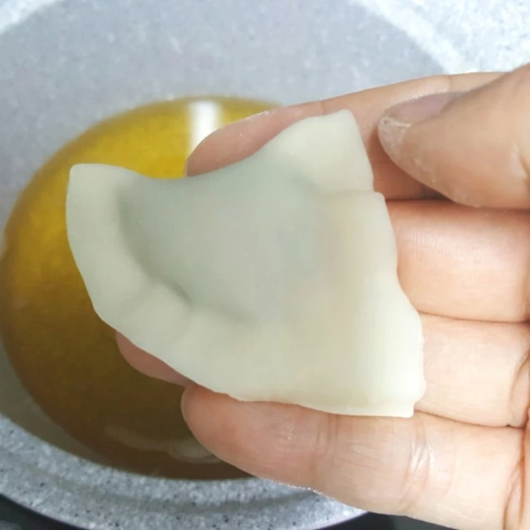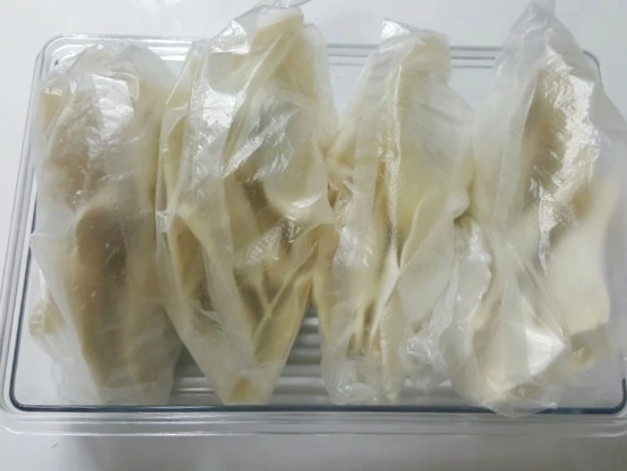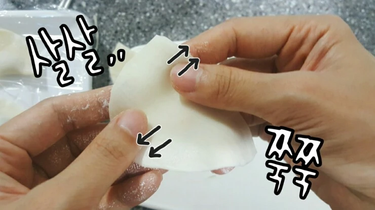 ※한번에 너무 많이 떼어내면 빚는동안 만두피가 말라서 갈라지니까 5,6장씩만 떼어내서 작업해주시는게 좋아용