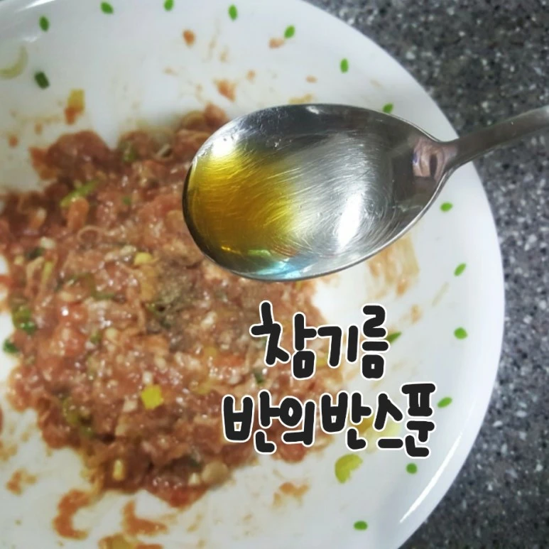 1-3) 그 다음 후추 조금과 참기름 반의반 숟갈정도 넣고