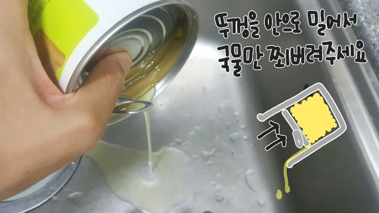 통조림을 까서 국물만 쬐어 버려주신 뒤