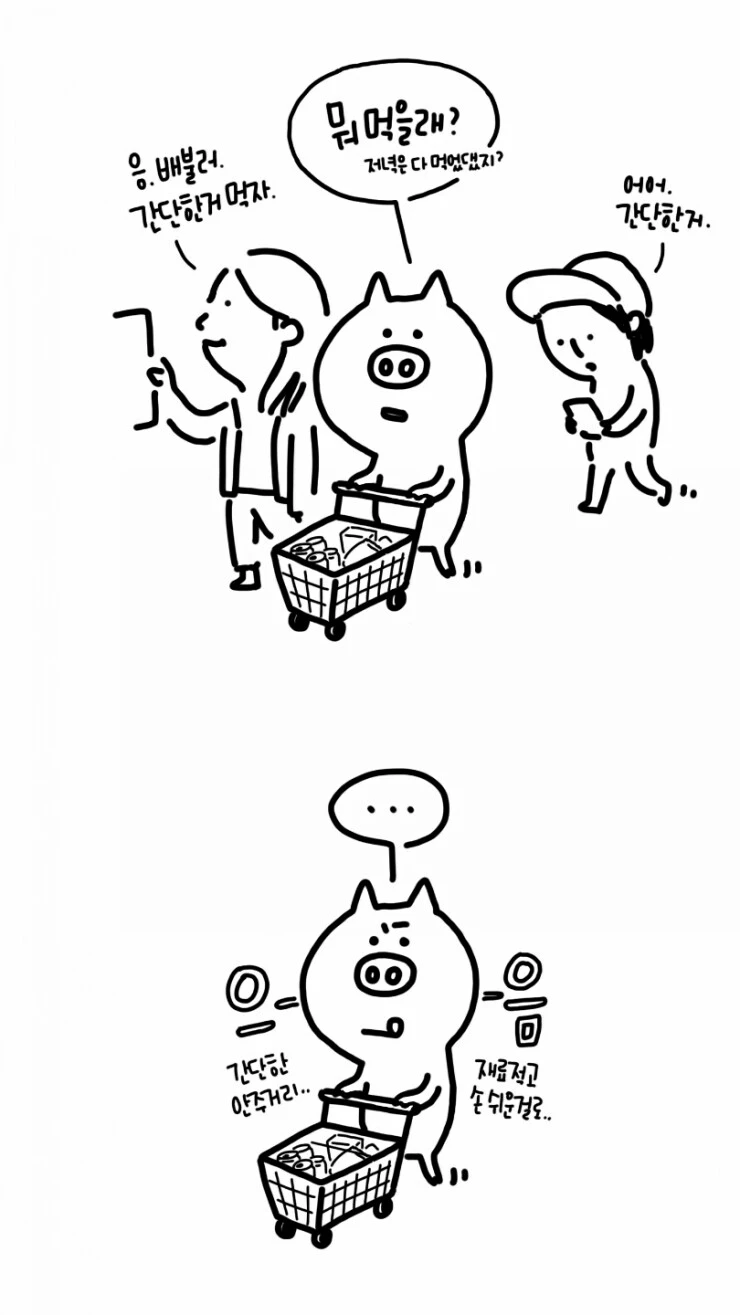 그래도 뭐 과자만 먹기도 거시기하고..