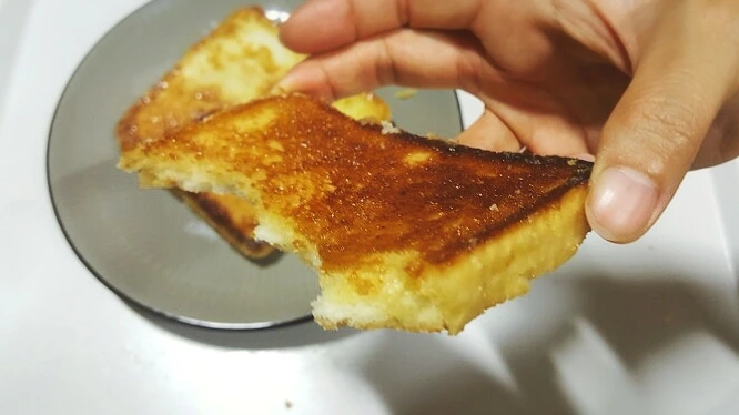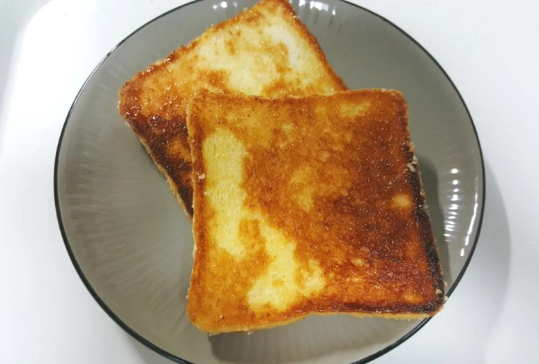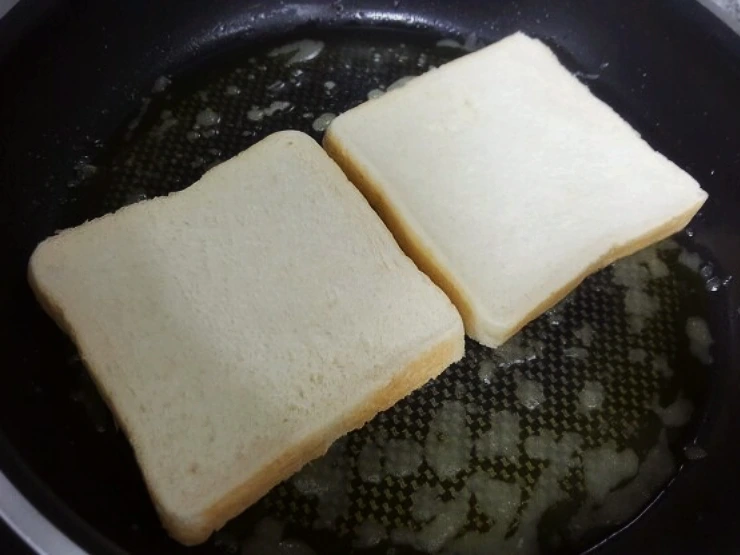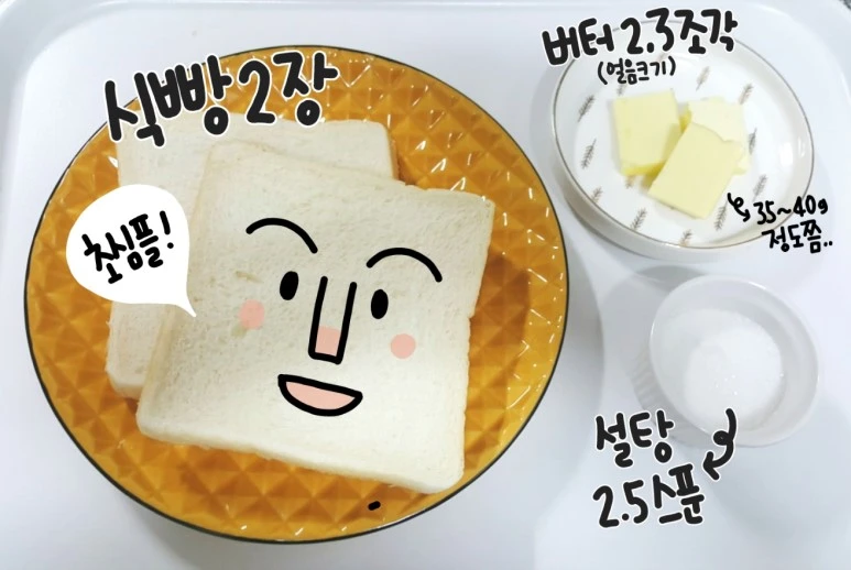 식빵 2장. 버터(얼음크기로)2,3조각, 설탕