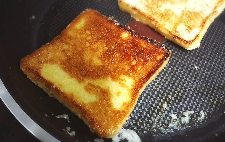 녹인버터를 예열된 팬에 붓고 빵을 구우면 끝!!