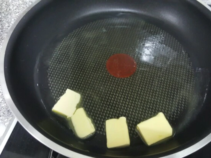 팬을 잠시 예열한뒤 녹인버터를 붓고